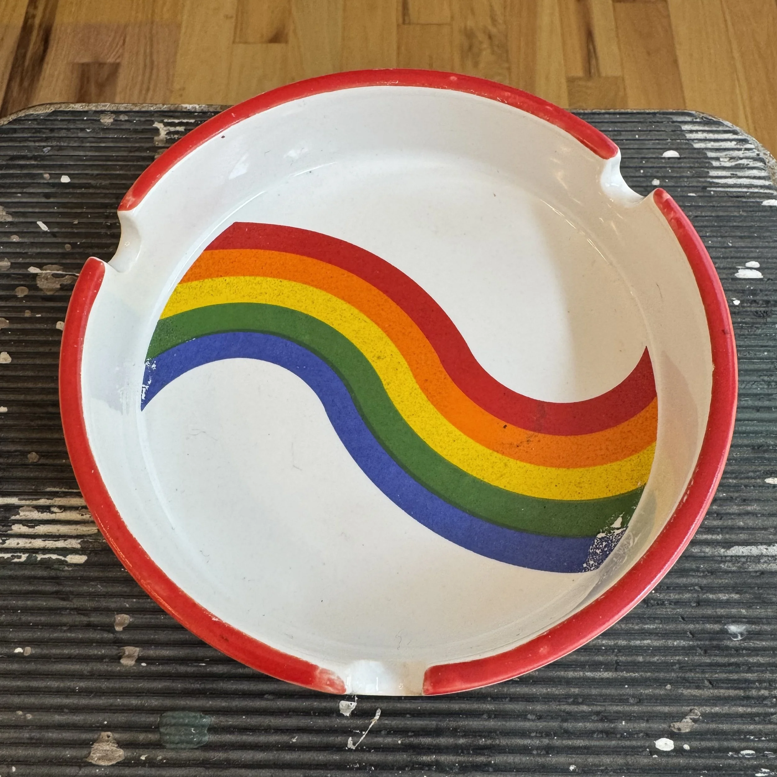 This is a rare find. It is much easier to find a glass ashtray or a stand, but finding one that has both original parts is much harder. We think the handle makes it super easy to swing it over to a friend who is about to drop ashes on your carpet.
